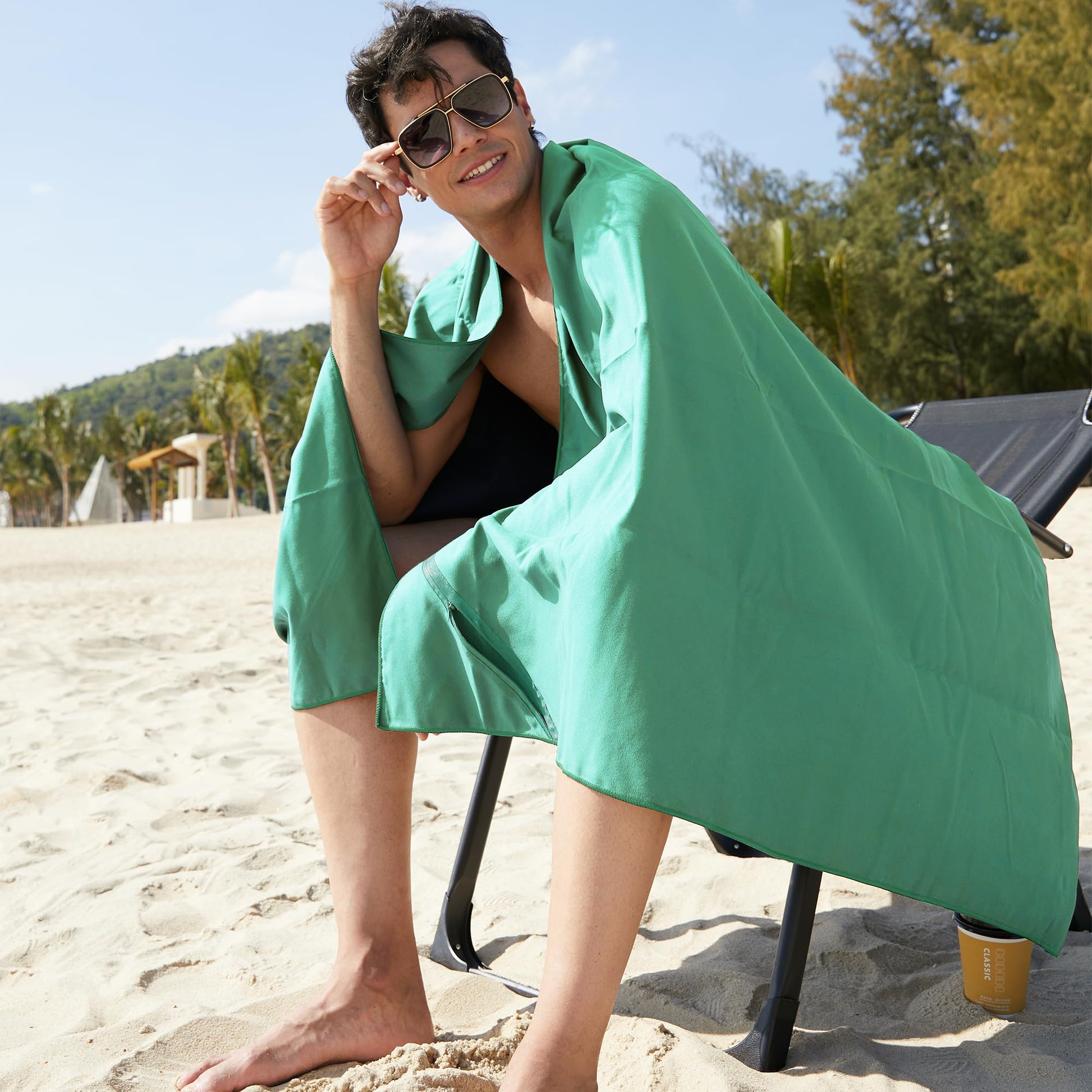 - SKIN FRIENDLY - Remarkable soft suede like feel on your skin and face. It can also be used as a blanket to keep warm. POCKET - The 40*72 inches towel has a zippered pocket in the corner.